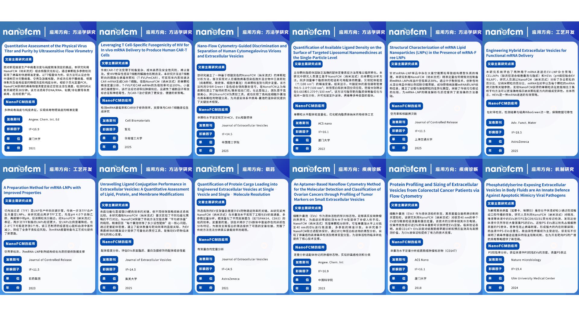 从填补纳米颗粒表征技术空白,到助力1000+篇顶刊发表,再到被10项国内外标准/共识/指南纳入参考,NanoFCM始终以精准数据,赋能全球生物医药科研与产业创新,成为科研用户的“论文助手”、企业用户的“质控伙伴”。
